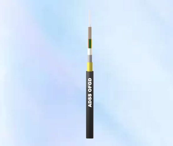 ADSS 光缆采用松套层绞式结构,将 250μm 光纤套入高模量材料制成的松套管中,松套管内填充防水化合物。松套管(和填充绳)围绕非金属中心加强芯(FRP)绞合成紧凑的缆芯, 缆芯的缝隙充以阻水油膏。缆芯外挤制聚乙烯(PE)内护套,然后绞合起加强作用的芳纶, 最后挤制聚乙烯(PE)外护套或耐电痕(AT)外护套。